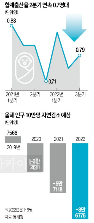 그런데 이번 3분기 출산율(0.79명)은 초저출산 기준선에도 한참 미달하는 수준인 것입니다.
