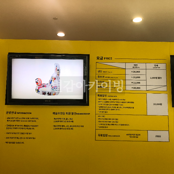 - 가격 : 일반(20세 이상) 20,000원 / 청소년(14-19세) 15,000원 / 어린이(36개월 이상-13세) 13,000원