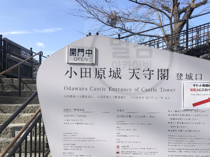 오다와라성 천수각 오르는 입구에 오픈 중이라고 안내도가 있습니다.
