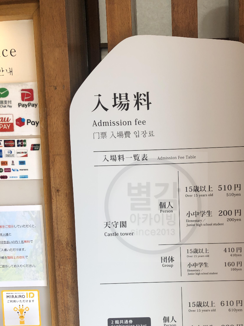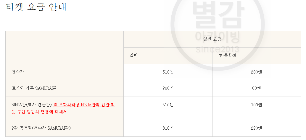 그러면 본격적으로 닌자체험관을 살펴보기 전에 오다와라성의 티켓요금을 살펴보겠습니다.