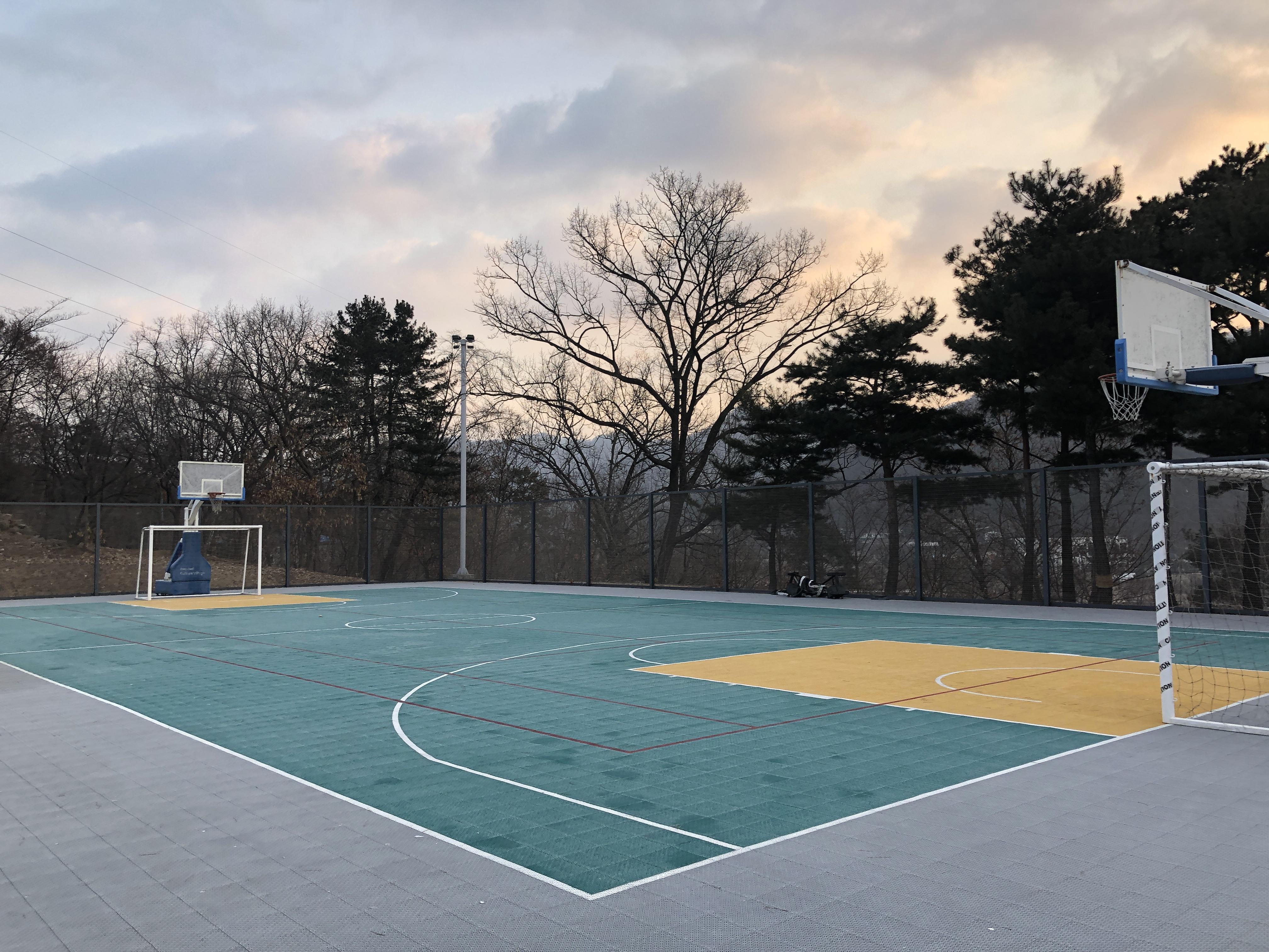 동화컬쳐빌리지 연수원 힐사이드 위쪽에는 그린코트라 해서 농구코트와 풋살장, 배드민턴 코트도 완비되어 있어서 워크숍 중에서 체육 활동도 진행할 수 있었습니다.