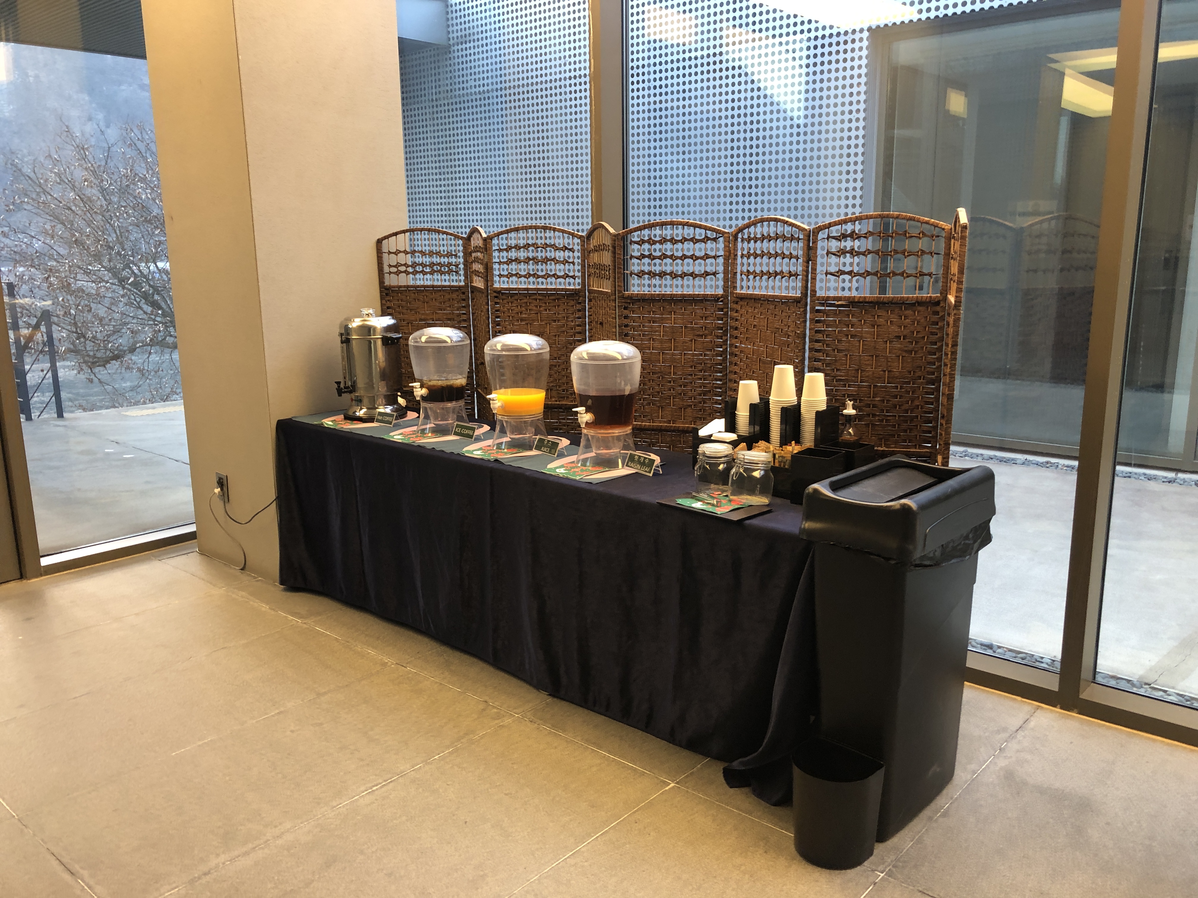 음료는 따뜻한 아메리카노, 아이스 아메리카노, 오렌지 주스, 헛개수였습니다. 페퍼민트도 있었구요. 컵도 충분히 제공했습니다.