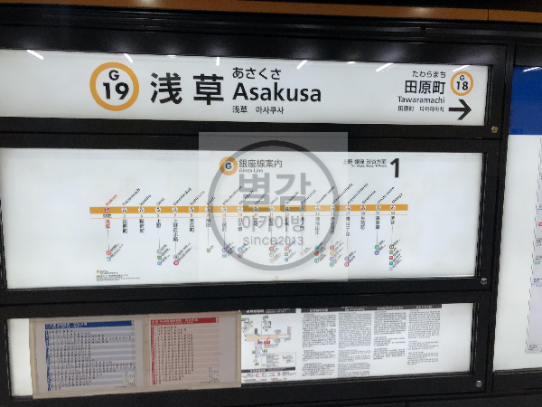 긴자선에서 아사쿠사방면의 전철을 타고 갑니다.