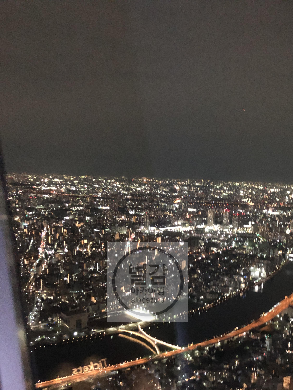 도쿄를 흐르는 스미다 강과 저멀리 바다(도쿄만), 그리고 수두룩 빽빽한 다양한 빌딩과 건물, 그 사이에 있는 학교까지 도쿄의 야경은 너무나 아름다웠습니다.