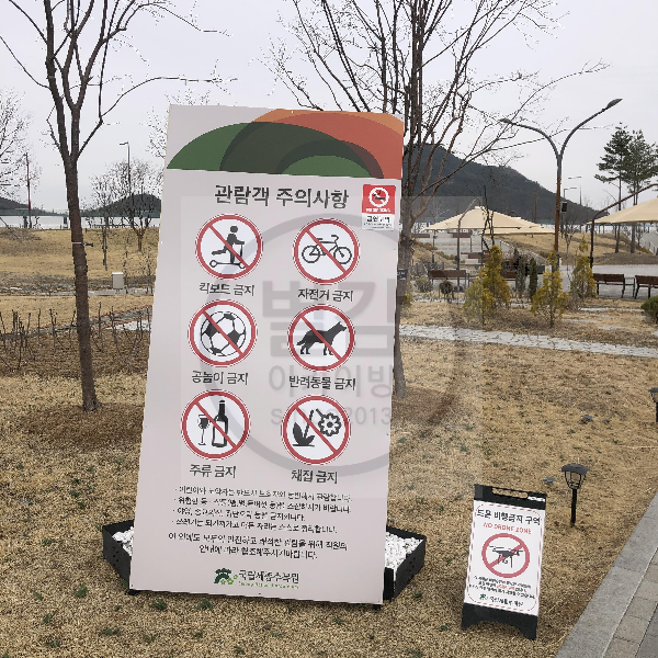 | 타인에 관람에 피해를 줄 수 있는 물품 | (식물·곤충 채집기, 운동기구, 연, 원반, 공, 라켓, 텐트, 자전거, 전동휠, 인라인 스케이트, 킥보드, RC카, 드론 등) |