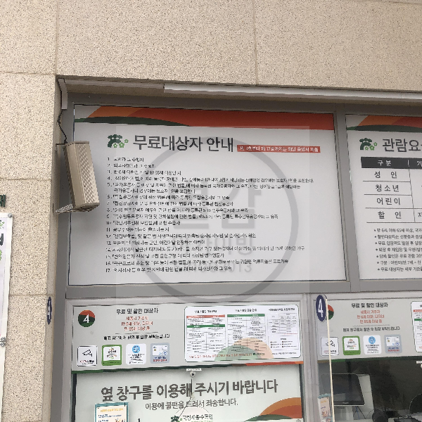 | 관람시간 | 하절기(3월 ~ 10월) 평일/주말 09:00~18:00 (입장마감 17:00) 동절기(11월 ~ 2월) 평일/주말 09:00~17:00 (입장마감 16:00) |
