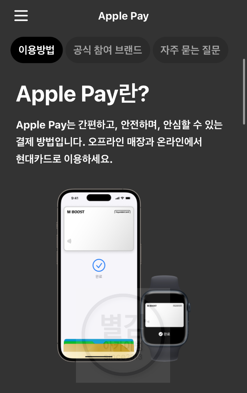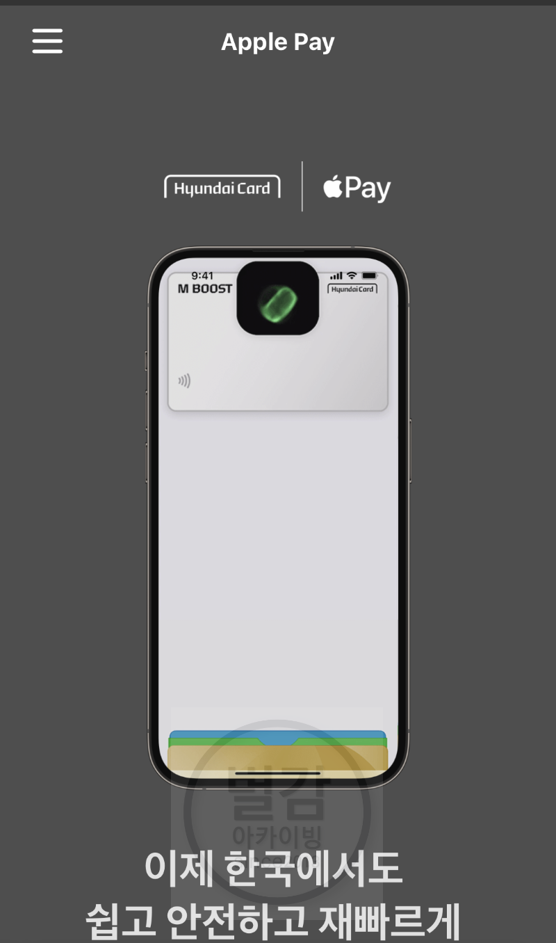 현대카드에서 꽤 오래 공들였던 애플페이가 드디어 한국에서 오늘부터 사용할 수 있게 되었습니다.
