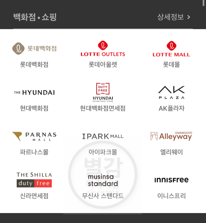 신세계를 제외하고는 대부분 백화점도 됩니다.
