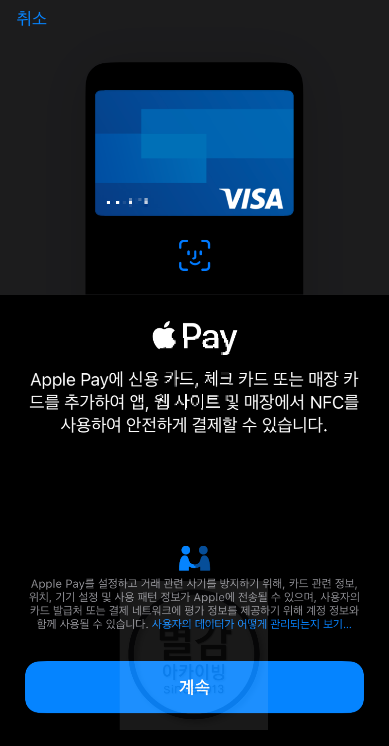 오늘 애플페이를 설치했습니다.