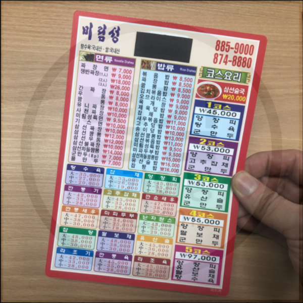 미림성 후면 메뉴판입니다.