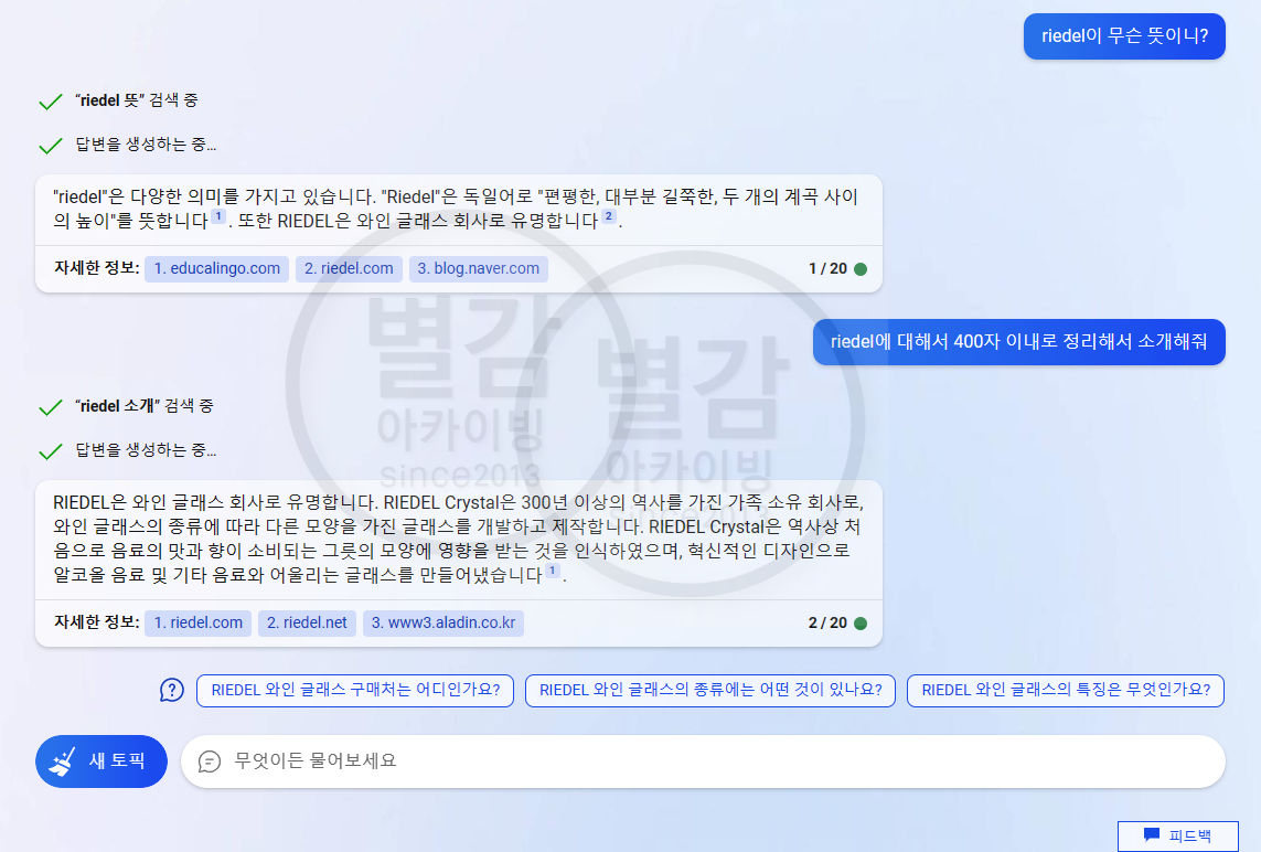 그리하여 Bing AI 챗봇에게 riedel의 의미에 대해서 정리해달라고 문의를 해보았습니다.