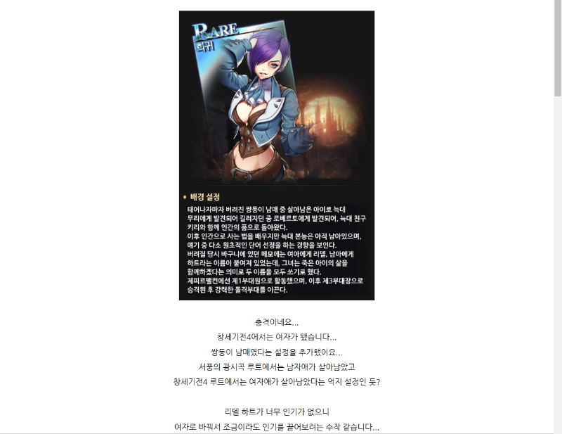 창세기전4 루트에서는 여자애가 살아남았다는 억지 설정인 듯?