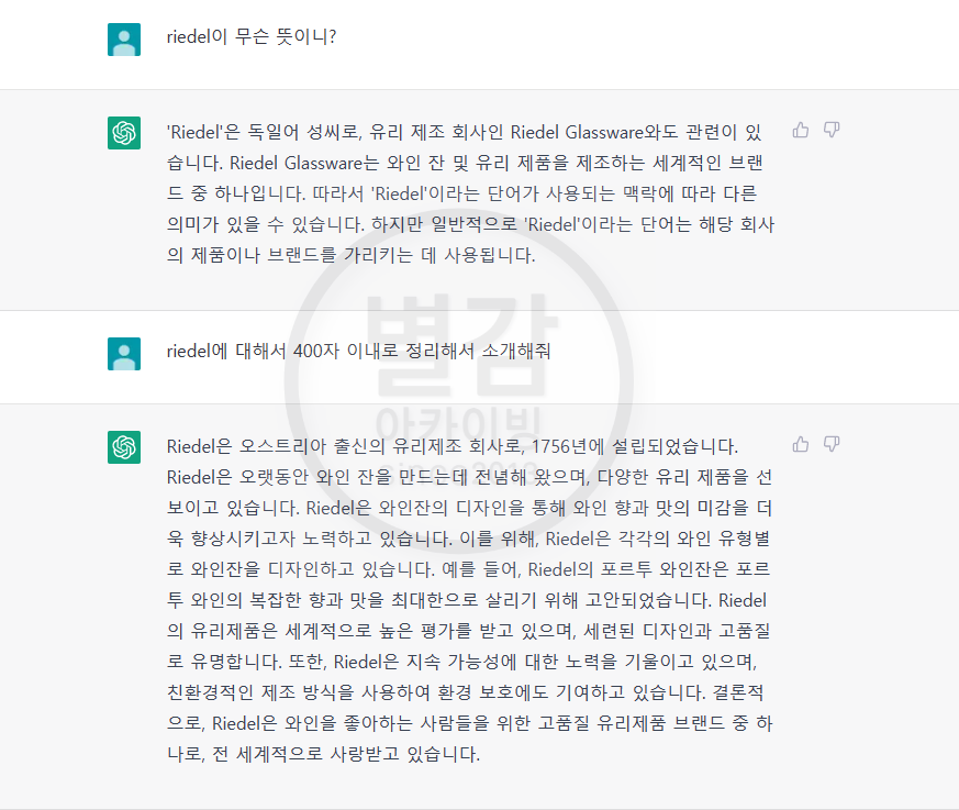 제가 구글에게 riedel의 의미에 대해서 묻자 챗GPT는 다음과 같이 답변했습니다.