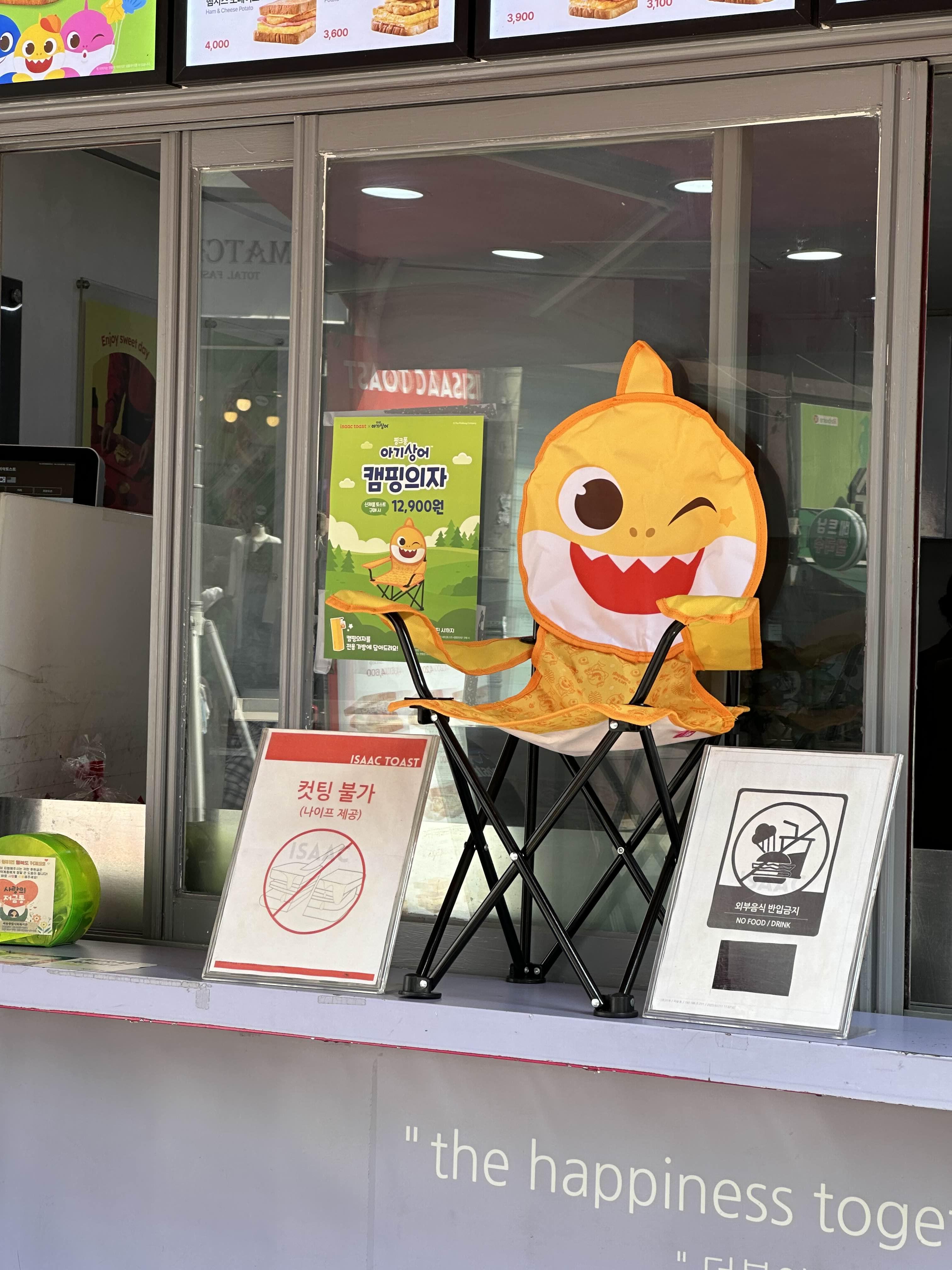 어제 이삭토스트에서 마지막 하나 남은 핑크퐁 아기상어 캠핑의자를 구입한 경험은 정말 행운이었습니다. 이삭토스트와 핑크퐁의 콜라보 이벤트에 감사드립니다.🙏
