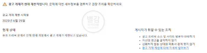 | 티스토리 자체 광고로 인한 애드센스 광고 게재 제한 사태 (1) | 2023.06.28 |